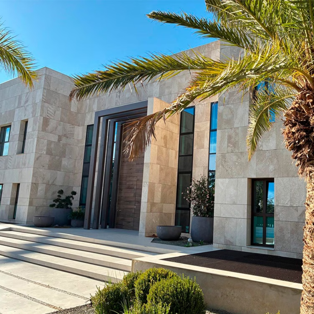 La piedra travertino es una opción muy interesante cuando buscas un acabado exterior con apariencia natural, elegante y duradera. Aporta personalidad al edificio y, bien utilizada, encaja tanto en arquitectura contemporánea como en diseños más clásicos o mediterráneos.